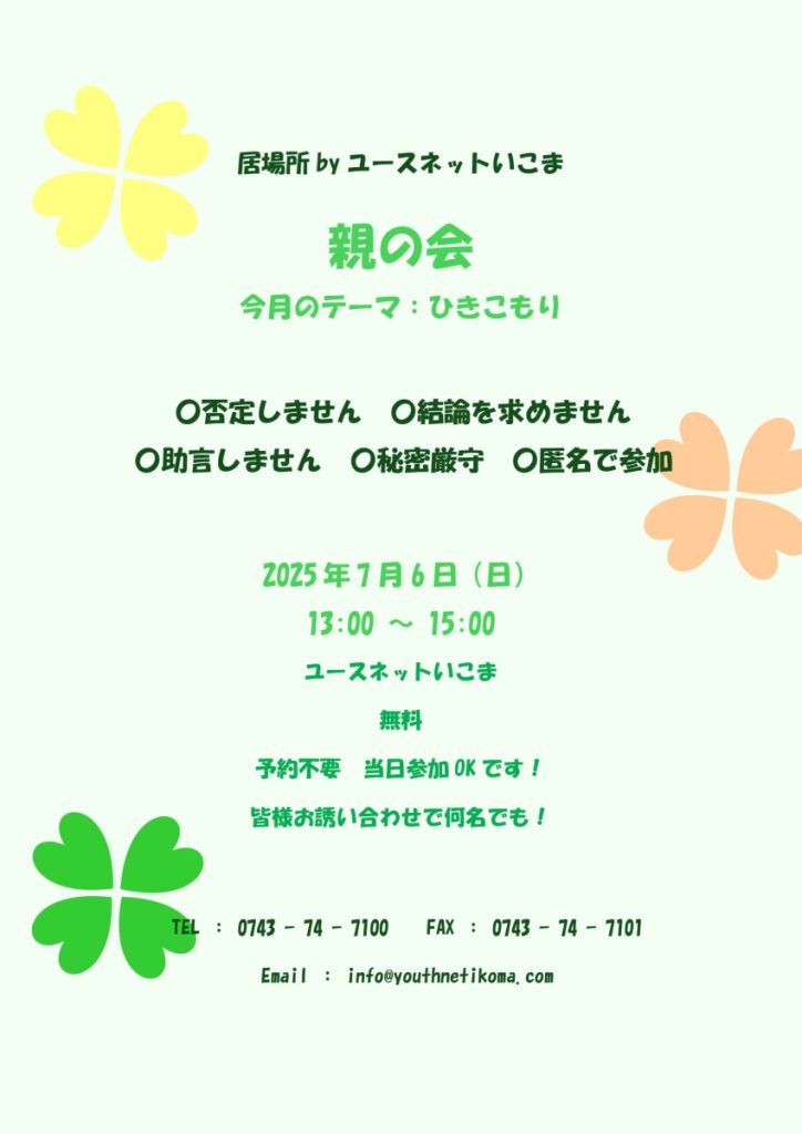 【相談時間】火・木~日 9:00~17:00 ※月・水曜日、祝日・年末年始を除く〒630-0245 奈良県生駒市北新町12-32 教育支援施設2階