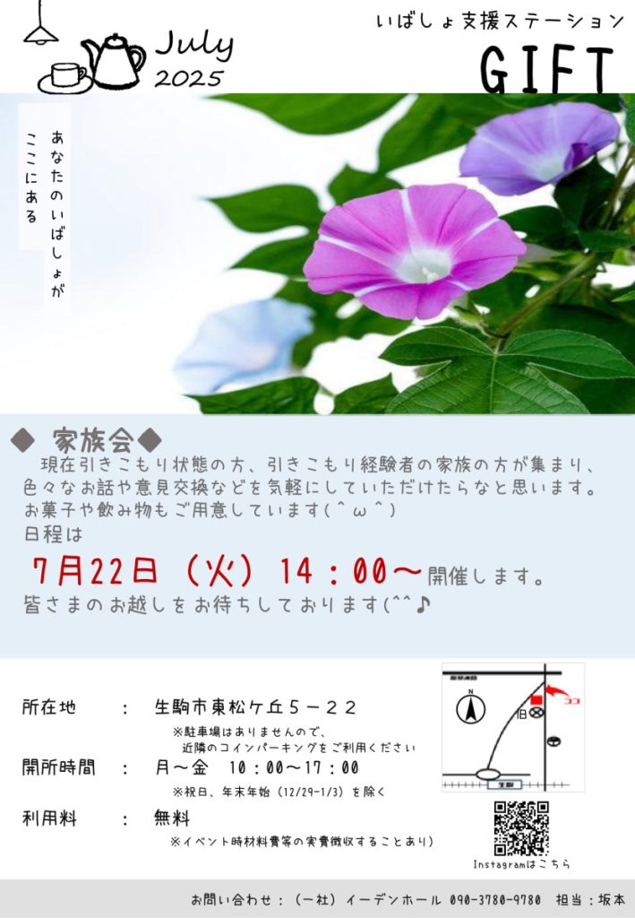 ユースネットいこまのネットワーク機関である「いばしょ支援ステーションGIFT」のご案内です。