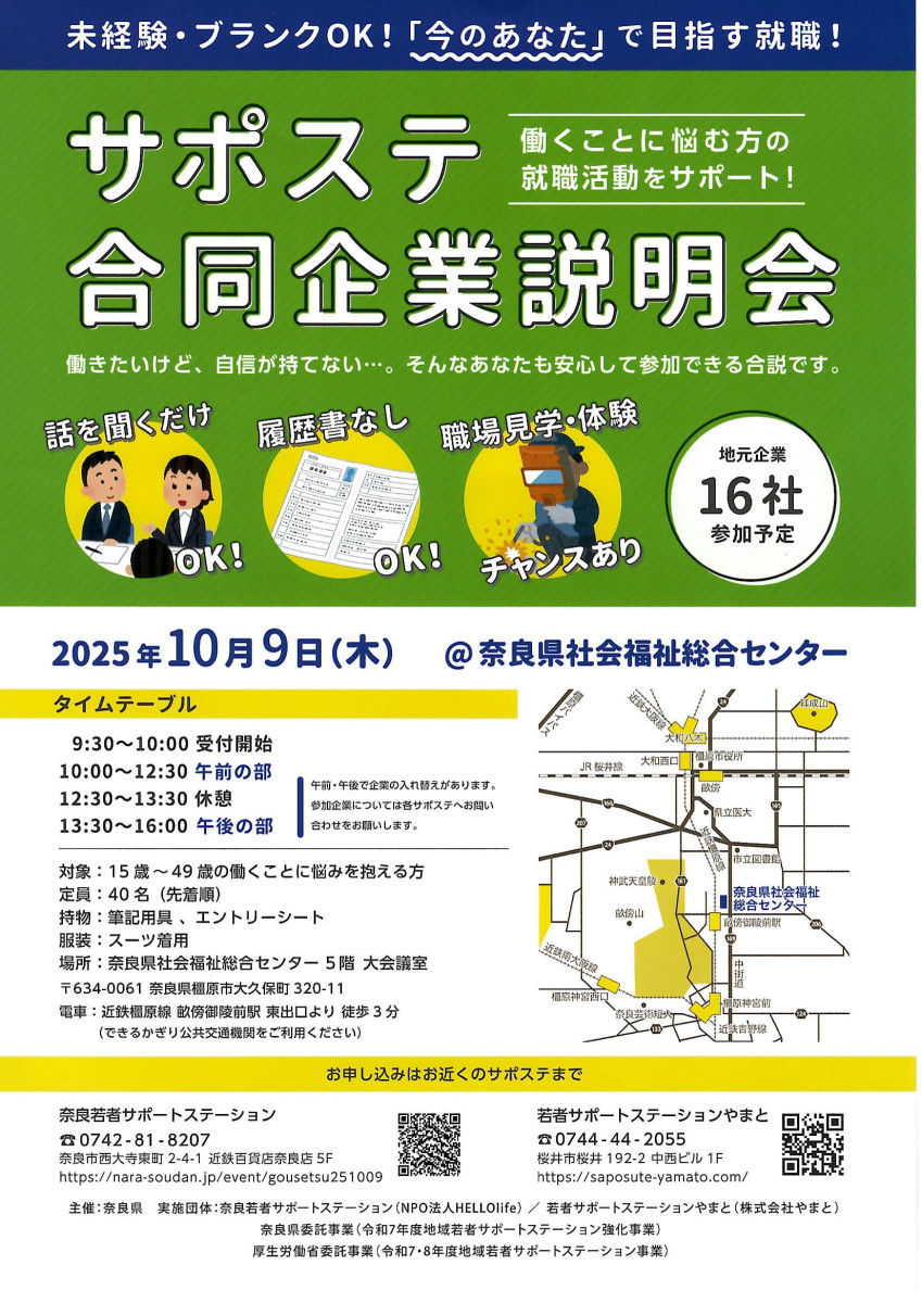 連絡先:若者サポートステーションやまと/奈良若者サポートステーション